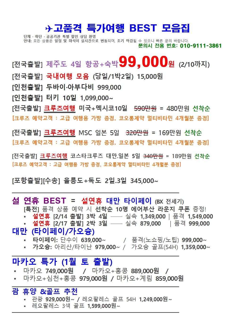 [전국출발] ✈ 30가지 인기상품을 한눈에! 고품격 · 특가여행 BEST 모음