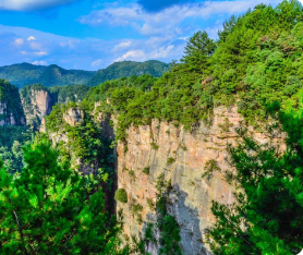 천자산 자연보호구는 무릉원의 북서쪽 위치에 있으며 면적이 총 67만㎢ 이며 가장 높은 봉우리는 1334m입니다. 자연의 모습을 비교적 그대로 보존하고 있는 편으로 자연경관이 뛰어나고 웅장한 모습과 더불어 빽빽이 들어간 기이한 봉우리군이 마친 선계를 방불케합니다.