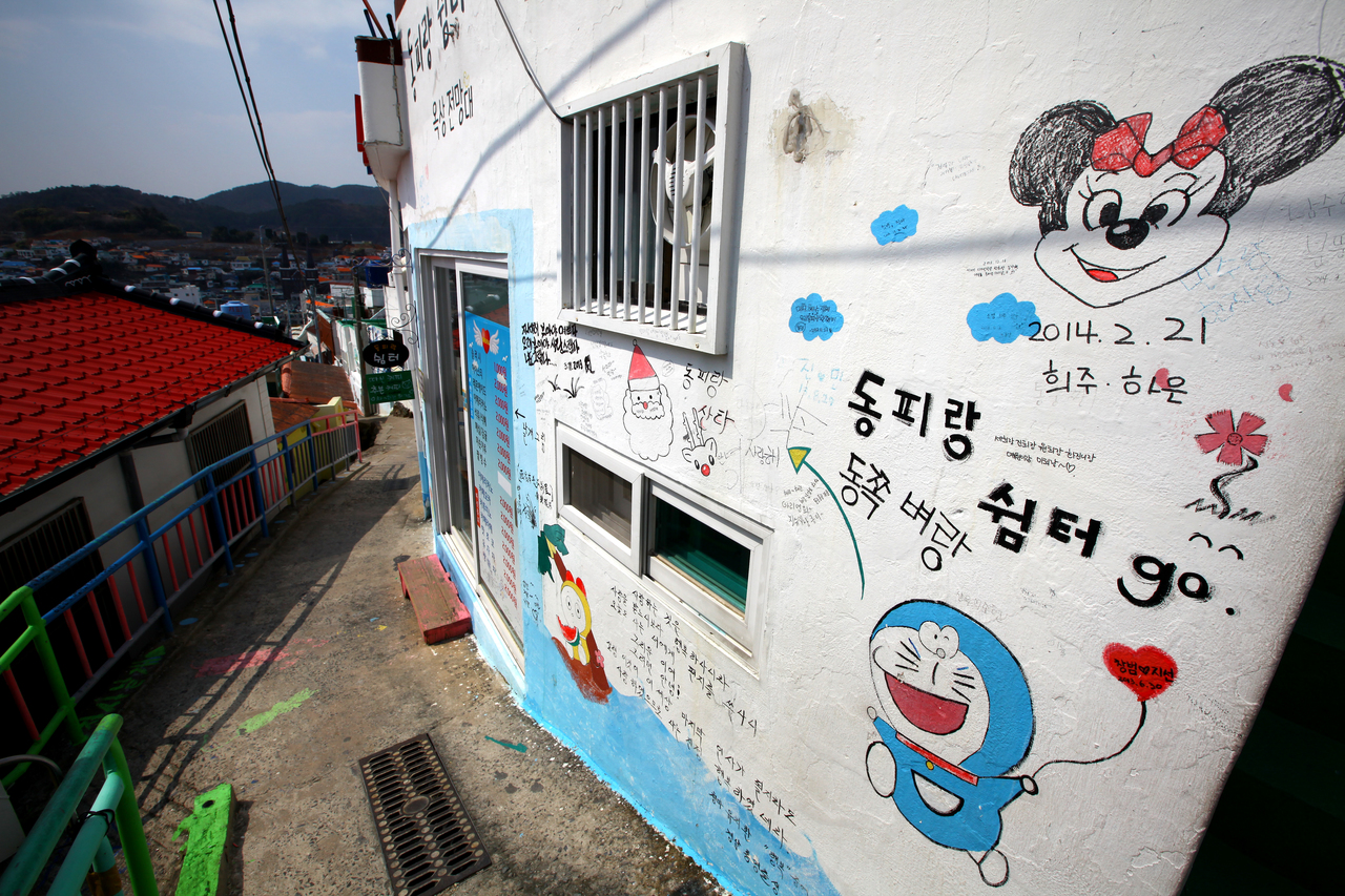 → 통영 달동네 동피랑마을의 200여m 골목에 새겨진 벽화가 유명한 곳으로 동양의 나폴리라 불리는 통영항과 시가지를 한 눈에 볼 수 있는 언덕