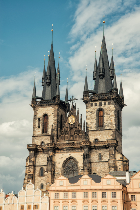 구 시청사 맞은편, 킨스키 궁전 바로 옆에 위치한 틴 성당은 하늘을 찌를 듯한 멋진 첨탑이 인상적이다. 1365년 세워진 이 교회는 금장식을 정점으로 하는 두 개의 탑이 높이 80m에 이른다. 화려한 외관은 초기 고딕양식을 띠고 있지만 내부는 바로크 양식으로 음울한 분위기이다. 이 교회에서 가장 볼 만한 것은 북쪽 벽에 있는 로코코 스타일의 거대한 제단과 아름다운 동북쪽의 출입문이다. 이 곳에서는 종종 클래식 콘서트가 열리며 특히 웅장한 파이프 오르간의 연주가 기막히다.