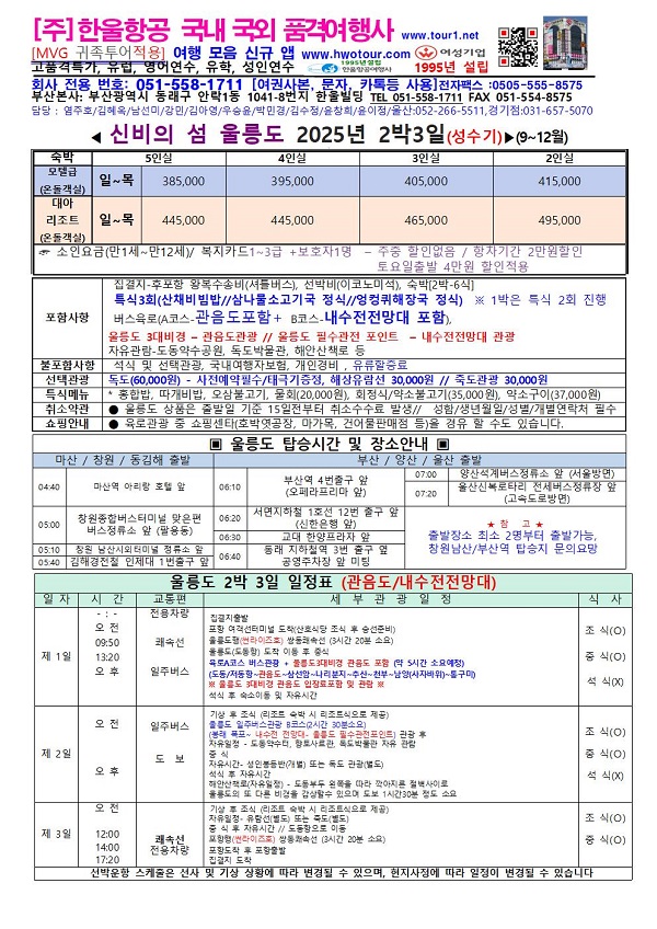 ※ 포항수송 별도시 1인 35,000원 공제, 포항조식제외 1인 9,000원 공제 // 독도는 사전예약필수
