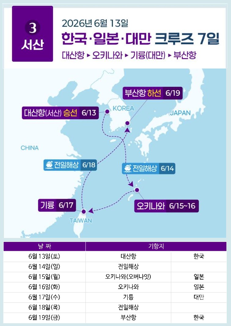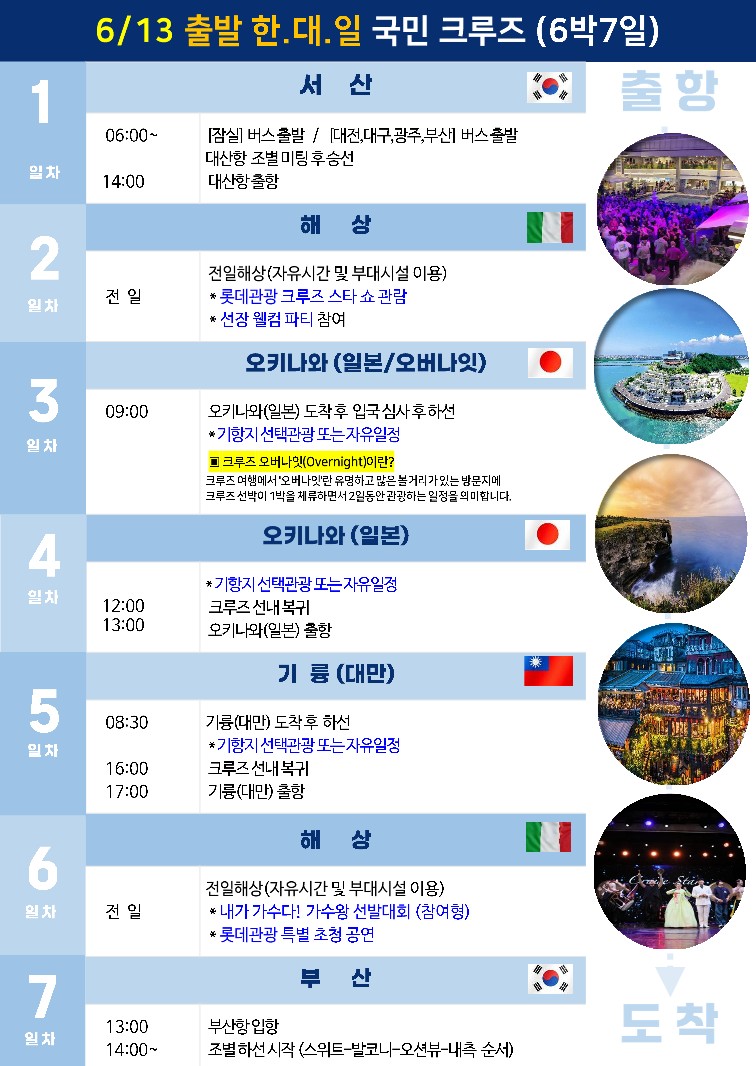 1일차 6월13일 출발확정 한국. 일본. 대만. 3개국 크루즈